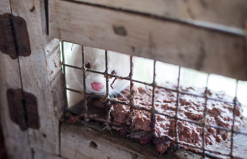 在农场,狐狸、水貂等动物的生存环境十分恶劣,它们蜷缩在肮脏不堪的铁笼中,有些动物因为长期处于恐惧状态而发疯。