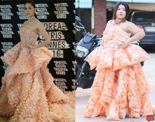 台湾ETtoday东森新闻云网站5月16日报道,泰国少女赛恩是贩售大尺码服装的网络卖家,也时常自己兼任Model,为消费者试穿衣服,这回看到艾拉雅的美丽礼服,突发奇想用母亲店内卖的“虾”自制成“虾饼礼服”,模仿艾拉雅的打扮。