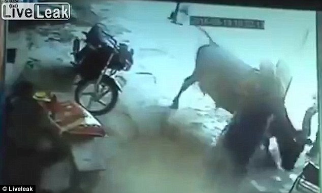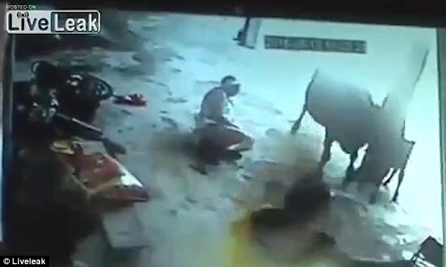视频中,母牛将两人撞倒在地,并且还撞翻了他们的摩托车,防止其逃跑。西玛在母牛的帮助下成功脱离险境,但由于之前已身中数刀无力前行,终于瘫倒在地,不幸身亡。