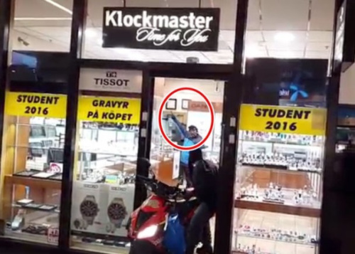 瑞典斯德哥尔摩两名笨贼,上周打劫一间珠宝钟表行时频频出洋相。