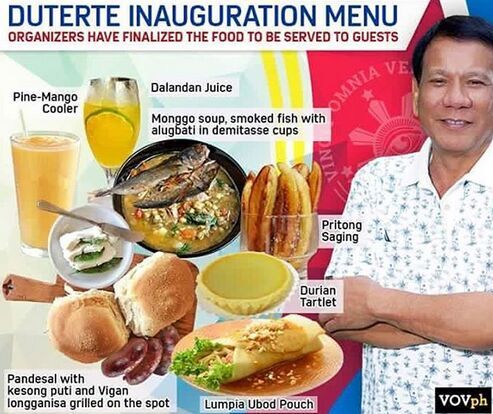 【环球网综合报道】据美国“石英”网6月29日报道,菲律宾新总统杜特尔特就职典礼将于6月30日举行。由于新总统作风简朴,不喜铺张,就职典礼宴会菜品也十分低调。