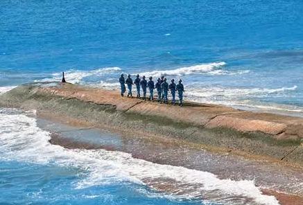 1月5日,守卫在南沙群岛永暑礁上的海军官兵在防波堤上巡逻(查春明摄/本刊)