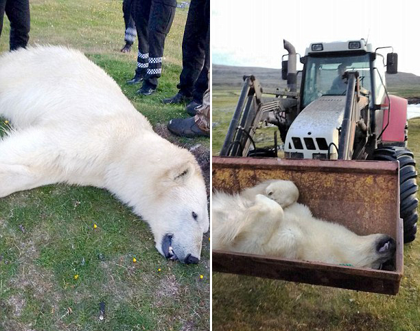 北极熊并不是冰岛的本土物种,凡是在冰岛现身的北极熊大多都是从格陵兰岛乘着冰块漂流而来。然而,经过海上漂流的北极熊往往非常饥饿,极有可能攻击人类,对人类的生命和财产安全造成威胁。因此,冰岛的国家政策规定,北极熊一经发现,当场射杀。目前,北极熊的尸体将被送往冰岛的自然历史研究院进行解剖,之后将会被制成标本在当地博物馆展出。