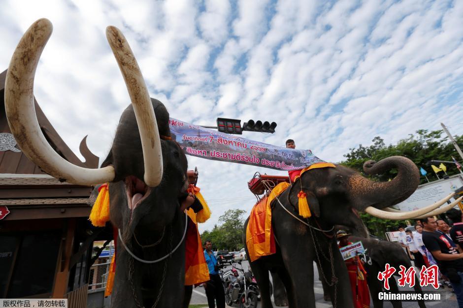 泰国大象发传单为新宪法公投造势 大象鼻子趣事多
