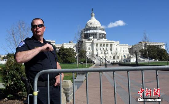 资料图:警卫在国会山门口巡逻。中新社记者 张蔚然 摄