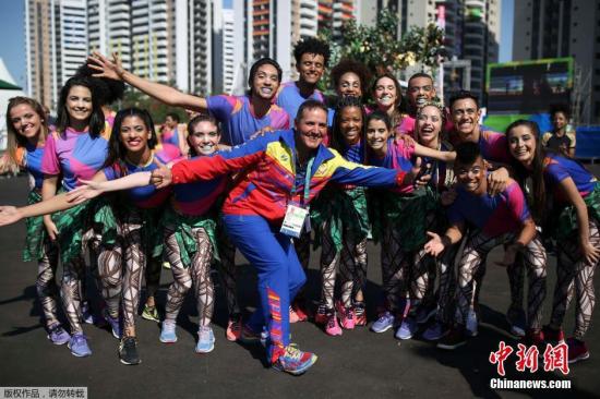 参加奥运会的委内瑞拉代表团摆出pose拍照。