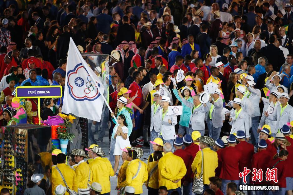 当地时间8月5日晚8时,2016里约奥运会开幕式在里约热内卢马拉卡纳体育场举行,中华台北代表团入场。中新网记者 盛佳鹏 摄