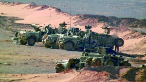 照片显示,这支精英部队驾驶约旦产的“狐”式远程巡逻车,车上配备重机枪、狙击步枪和反坦克武器装备。这种军车由丰田陆地巡逻舰改装,适应恶劣地形,最高时速140公里,有效载荷超过1.5吨,可储存作战10天所需的物资补给。