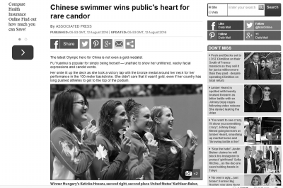 美联社以“中国游泳选手以少见的率真赢得了公众的心”为题,对傅园慧进行了详细报道。