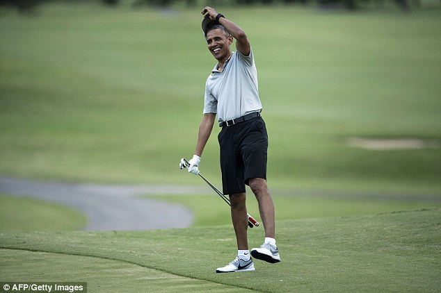 资料图:奥巴马被拍到与友人一同打高尔夫球。