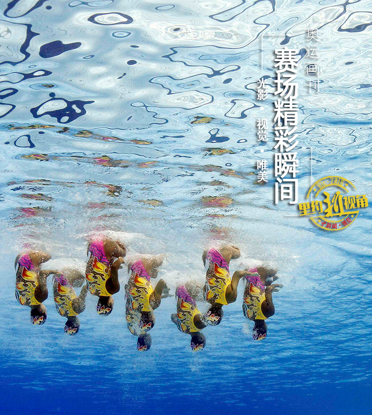 图为当地时间8月19日,里约奥运花样游泳团体决赛现场。