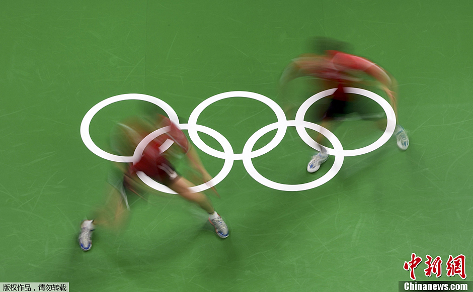 当地时间8月17日,乒乓球男子团体铜牌比赛,选手赛场上上演移形换影。