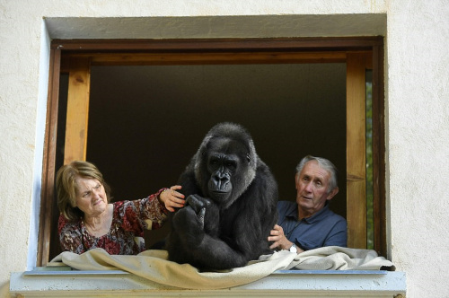 原标题:伟大的父母爱:夫妇收养大猩猩 13年未出门旅行