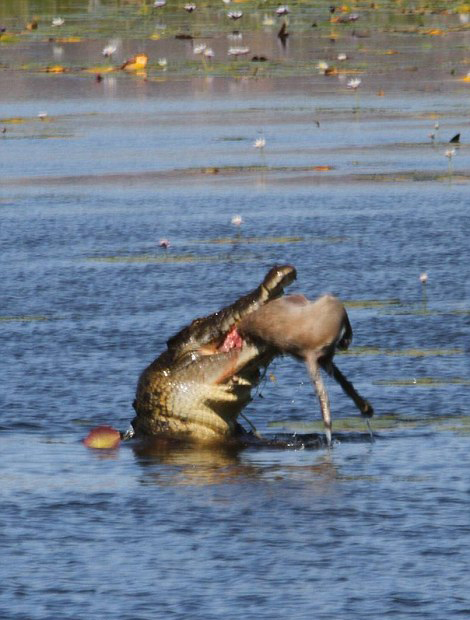 近日,摄影师唐娜德 莱克斯勒在其位于澳大利亚北部的住宅附近拍摄下了惊险一幕,4.5米长的巨鳄在30秒内吞食了一只沙袋鼠。