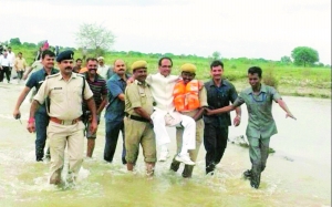 新华社电 印度中央邦连日来饱受洪水侵袭,邦首席部长希夫拉杰·辛格·乔汉上周末前去灾区视察,却招致骂声一片。原因很简单:尽管洪水只深及脚踝,乔汉却不愿自己走路,偏要让两名警察抬着走。