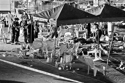 当地时间2日晚11时前,达沃市一处高级酒店旁的街边夜市发生爆炸。法新社报道,爆炸致死至少14人,另有67人受伤,其中16人伤势严重。爆炸现场到处是遇难者遗体,以及破碎的塑料餐桌、餐椅。