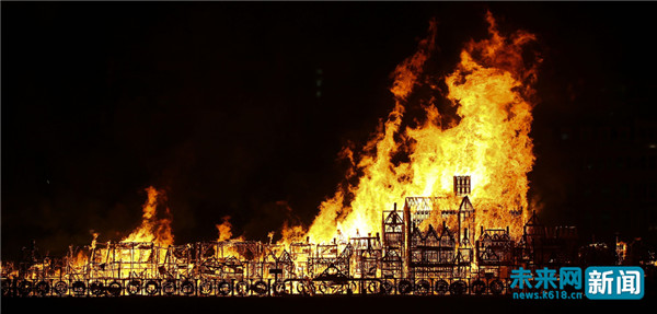 英国焚毁120米长伦敦城市模型 纪念伦敦大火350周年