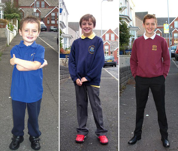 【环球网综合报道】据英国《每日邮报》9月5日报道,家住英国斯旺西市的男子罗伯特·奥谢在过去16年间,每年9月都在自家门口记录了儿子康纳开学第一天的美好时刻。