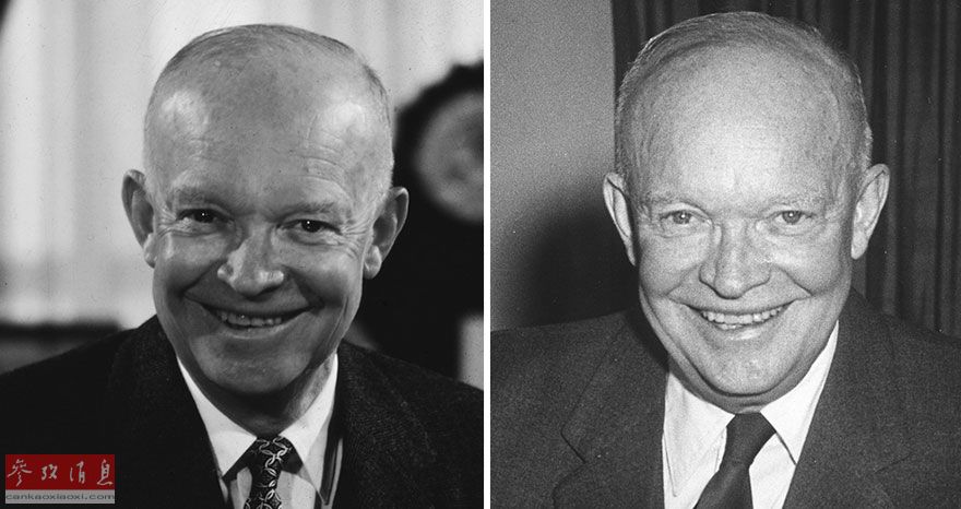 美国前总统德怀特·艾森豪威尔1953年和1961年对比照。