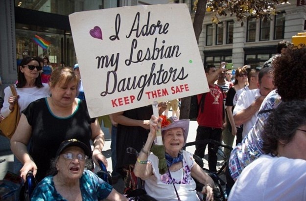 【环球网综合报道】据英国《每日邮报》近日报道,美国纽约市一位92岁高龄的老太太30年来坚持参加“同志骄傲大游行”,每次都举着“我爱我的同性恋女儿,请保证她们安全”的标语。她的两个女儿在1970年游行开始后出柜,如今大女儿70岁,小女儿68岁。
