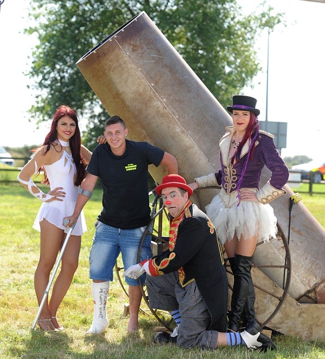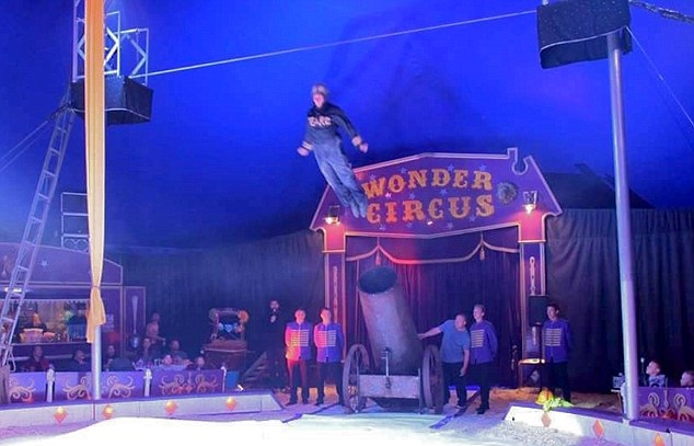 【环球网综合报道】人体炮弹特技表演是一项极具危险性的表演,大炮使用弹簧或空气喷气机让演员像炮弹般从炮筒中射出。据英国《每日邮报》近日报道,英国唯一一名人体炮弹特技演员在以80公里的时速从钢炮射出后脚踝破碎,仍不顾重伤向观众致谢。