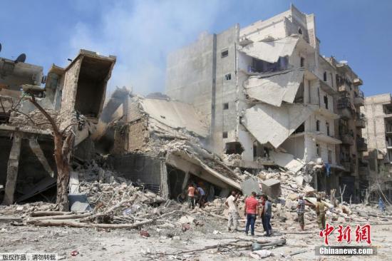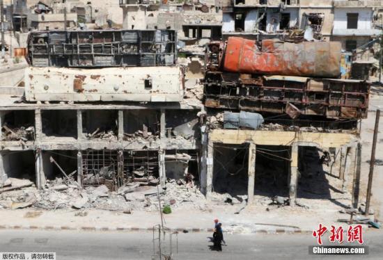 资料图:叙利亚阿勒颇被炸毁的废墟。
