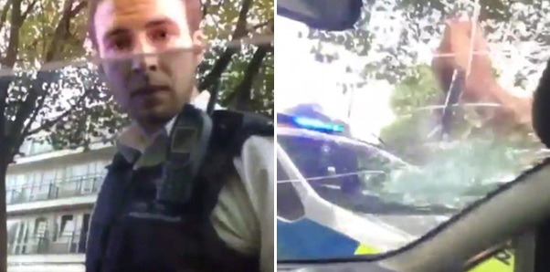 该视频9月15日下午拍摄于伦敦北部。视频中的警察不断疯狂叫喊要求司机方塔纳下车,并用警棍敲打侧窗玻璃恐吓司机打开车门。遭到拒绝后,警察竟然将汽车挡风玻璃砸碎,并试图用折叠刀撬开玻璃。