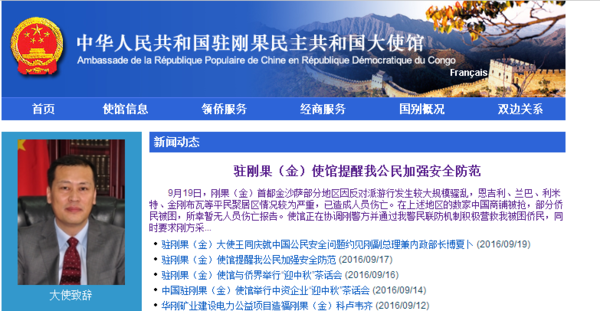 中国驻刚果(金)使馆领事保护电话:0851474669