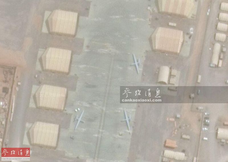 图为放大后的无人机卫星图片,从外形判断应该是3架MQ-9“死神”攻击型无人机。