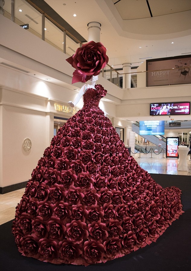 这款长裙名为“红玫瑰”,高3.5米,长4米,由400余朵纸质玫瑰精心制成,色彩明艳,夺人眼球。据了解,长裙上的每朵玫瑰均为纯手工制作,花费100多个小时制成。而后,这些玫瑰从伦敦被运往悉尼,由布兰德利耗时一周打造而成。布兰德利以设计此类纸质礼服闻名,其设计作品曾在哈罗兹、蒂凡尼、路易威登等名店展出,也曾在《时尚芭莎》等知名时尚杂志上出现。
