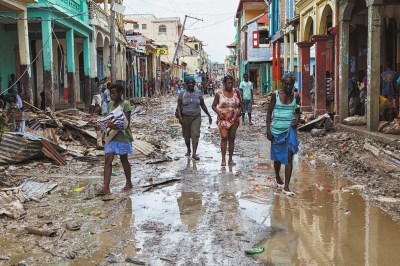10月6日在,海地热雷米村,民走在飓风过后积水的街道上。新华社发