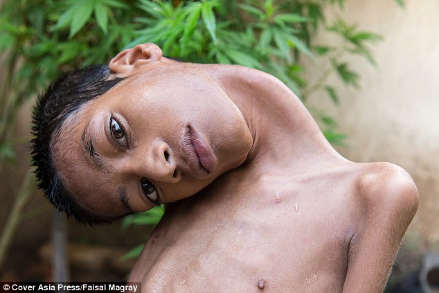 每日邮报10日报道,印度一个13岁的男孩Mahendra遇到了一种罕见的症状,他脖子上的肌肉太脆弱,以致于他的脖子弯曲横向180度生长。(凤凰整理编译)