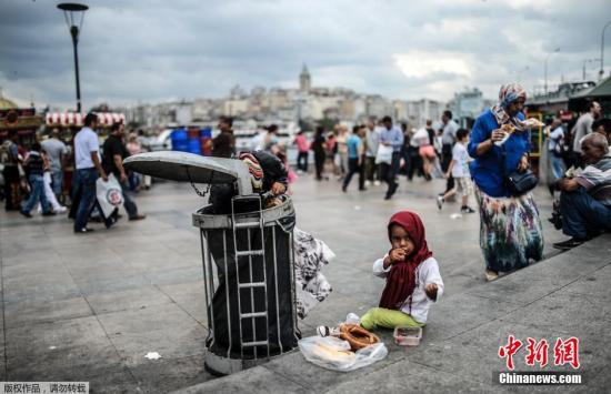 资料图:当地时间2014年8月18日,伊拉克伊斯坦布尔,叙利亚难民逃至土耳其避难,一名难民儿童吃妈妈从垃圾桶拣出来的食物。