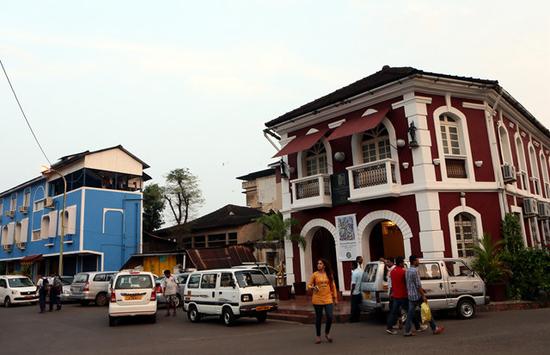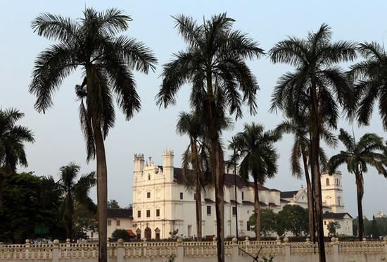 ▲果阿位于印度西海岸,气候宜人,是印度著名的旅游胜地。图为果阿旧城建筑