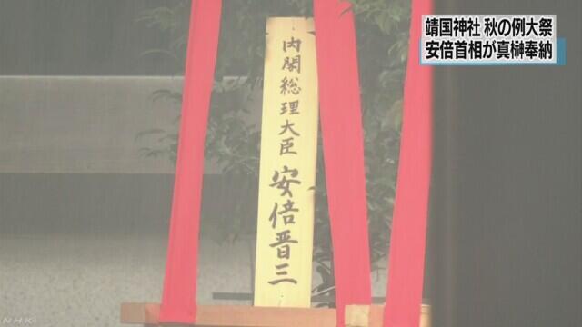 【环球网报道 记者 王欢】据日本NHK电视台10月17日报道,日本首相安倍晋三17日在秋季例行大祭开始之际,以“内阁总理大臣”的名义,向供奉有“二战”甲级战犯的靖国神社供奉了名为“真榊”的祭品。