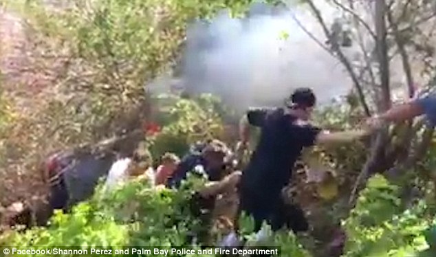 事故刚发生时,许多路人都惊慌失措。一位警官非常沉着,迅速跑到谷底去查看情况。只见那辆车已经底朝天,冒着黑烟,司机被安全带困在车内。随后,两位警官和一位围观者也上前搭救。该围观者打破了车的后窗,爬到车内搭救司机。但是司机却对前来施救者大叫,让他们别管。