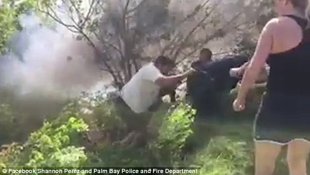 警方为了让司机更加配合,还动用了泰瑟枪和手铐。而且车子冒的烟越来越浓,施救刻不容缓。一位警官对堤上的围观群众大喊道:“大家抓紧了,开始拉!”就这样,由六七人组成的一条“人链”开始动起来,大家最后齐心协力把该司机拉上了路堤。