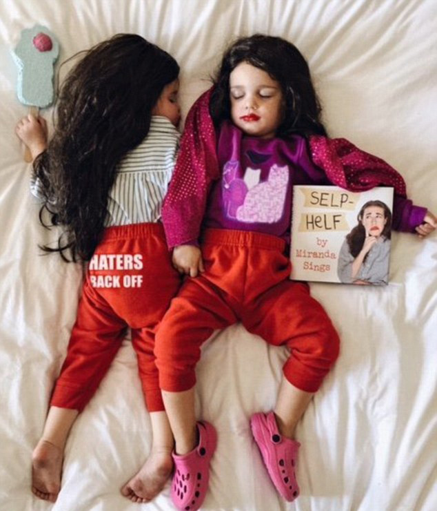 一张照片中,艾玛和米拉被妈妈打扮成了金·卡戴珊。她们穿着豹纹上衣和黑色紧身皮裤、脚踩高跟鞋、戴着黑色墨镜、一头黑色长卷发,霸气十足。而另一张照片里,她们又摇身一变,成了总统候选人“希拉里”和“特朗普”。