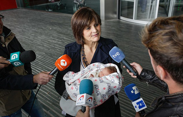 【环球网综合报道】据英国《每日邮报》10月18日报道,西班牙加利西亚62岁的老媪莉娜·阿尔瓦雷斯(Lina Avarez)在医生的帮助下进行了第3次人工受孕,剖腹产生下的女儿目前已经出院。她站在卢卡斯奥古斯都医院前接受采访时喜极而泣。