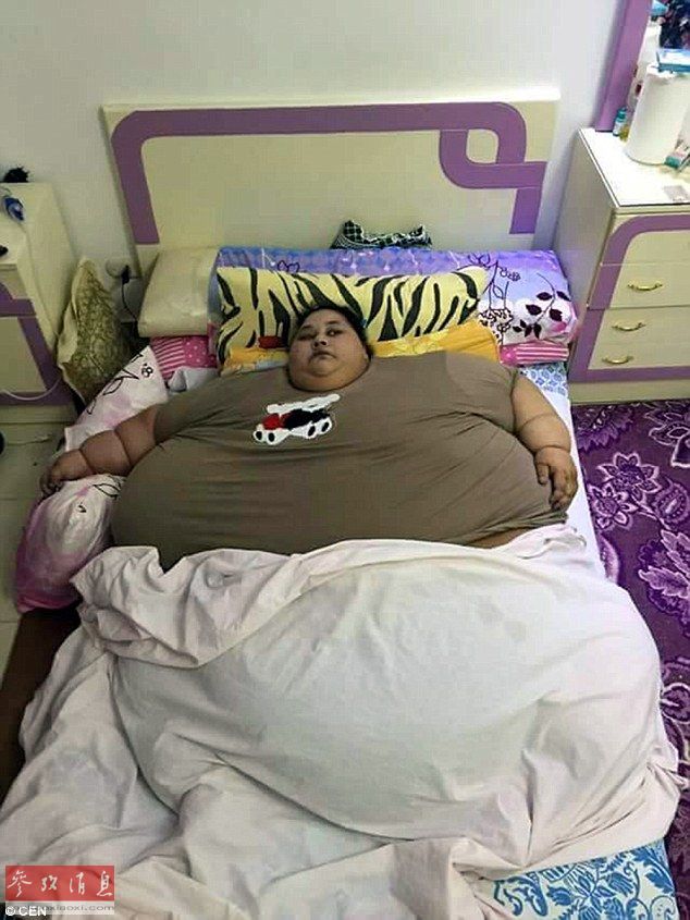 据英国《每日邮报》10月23日报道,来自埃及的Iman Ahmad Abdulati被认为是当今世界上最胖的女人,她已经有25年没有离开家门,由于体重过大,她甚至在床上翻个身都困难。另外比如吃饭、换衣服、洗澡这些生活中最简单的事情,她都必须要母亲和妹妹帮助自己才能做到。编译/余诗泉(参考消息网独家编译,转载请注明出处)