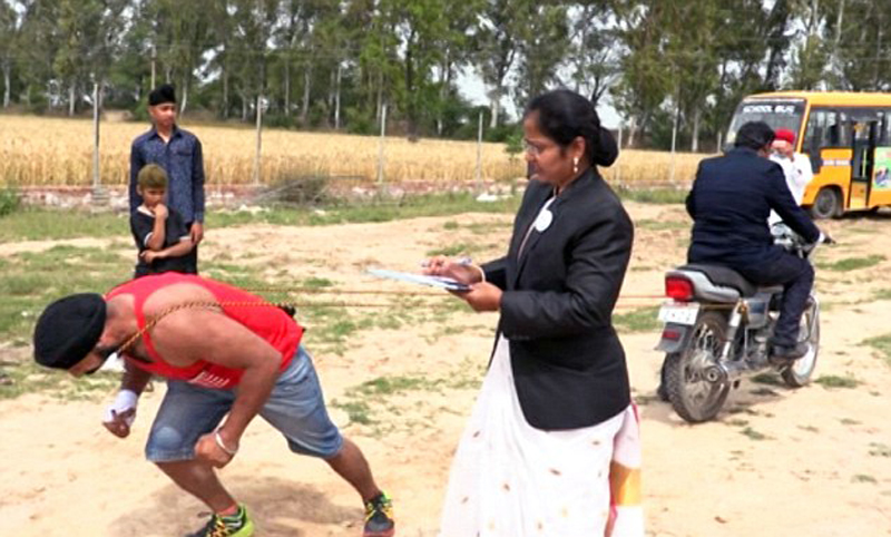 印度猛男挑战身体极限:铁锤击打下体 用牙齿叼人(组图)