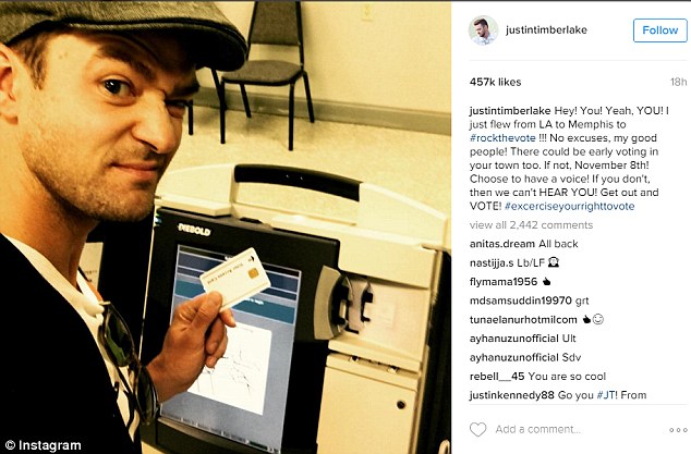 【环球网综合报道】据英国《每日邮报》10月25日报道,美国35岁的乐坛巨星贾斯汀·汀布莱克在Instagram社交平台上晒出了他在田纳西州投票站的自拍照,呼吁更多选民进行投票。他因此有可能会受到长达30天的监禁。