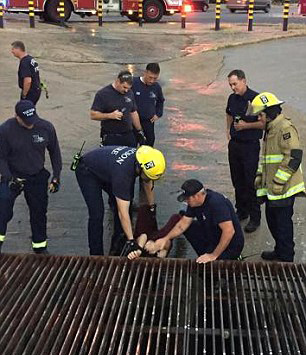 【环球网综合报道】据英国《每日邮报》10月25日报道,近日,美国亚利桑那州南部图森市的一个消防局接到一个与众不同的求助电话,一位名叫赫德里克(Hedrick)的男子被卡在了路边雨水水道的格子盖里。