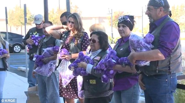 当地时间10月29日,美国新墨西哥州的阿尔伯克基,大约600人身穿紫色衣服参加了10岁女孩维多利亚马汀的纪念活动。