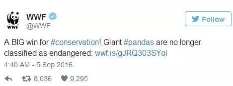 世界自然基金会(WWF)马上在推特上公布了这一好消息: