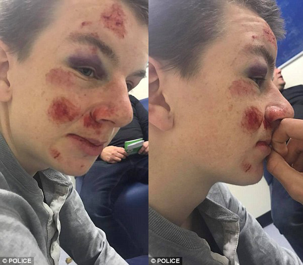 【环球网综合报道】据英国《每日邮报》11月6日报道,近日,英国德文郡的18岁自闭症少年詹姆斯(James)在大街上遭强盗团伙殴打,他的姐姐斯蒂芬·汤姆林(Steph Tomlin)对此表示十分愤怒,在“脸谱”上发帖,晒出弟弟的受伤照片,呼吁网友帮忙抓住这群强盗。
