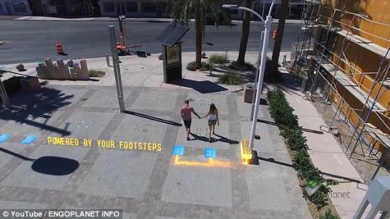 【环球科技综合报道】据英国《每日邮报》11月11日报道,下一次碰巧在拉斯维加斯度假的时候,你会发现你的脚步能带来光明,因为此地创造了一种神奇的充电方式——利用行人走路来提供电力。费城、圣路易斯以及更远的阿曼也安装着这款动能路灯。