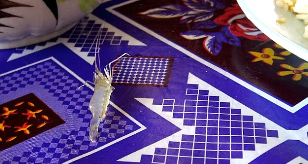 【环球网综合报道】据英国《每日邮报》11月14日报道,一对在柬埔寨旅行的英国夫妇在早餐时点了一份生鲜沙拉,但在揭开盖子的一刹那竟看见活虾在里面活蹦乱跳,其中一只还飞身一跃,跳出盘子后在桌子上活泼地扭动着。这对夫妇见状,啧啧称奇。
