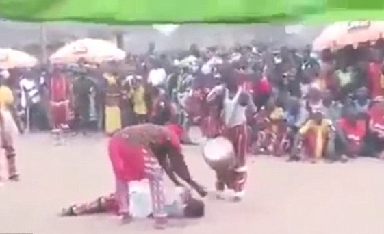 【环球网综合报道】据英国《每日邮报》11月15日报道,近日,西非一名巫师在宗教仪式上用刺刀刺伤一名男子的颈部,令其血流不止。巫师随即施法,使男子站了起来,场面十分血腥。