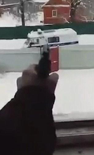当时警察前往事发的房屋寻找失踪的少年,一辆警车被暴露在炮火下。卡佳在视频中说,因为她的继父在特种部队,所以房间里有枪。